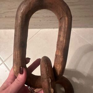 Elevate your shelf styling with this chunky handcrafted wooden chain decor. A sculptural statement piece that adds texture and warmth to your space. Made from solid wood with rich grain and intentional distressing, it’s the perfect neutral accent for entry tables, coffee tables, or bookcases. Mixes seamlessly with vintage, modern rustic, and boho interiors.