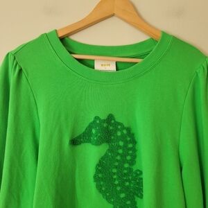 Anthropologie Maeve Seahorse Tufted Cotton Terry Sweatshirt Kelly Green Size 1X