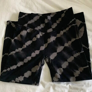 Black & gray tie dye. Excellent condition. Wide waist band. Back hidden pocket. 7/8 length. Ribbed.