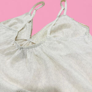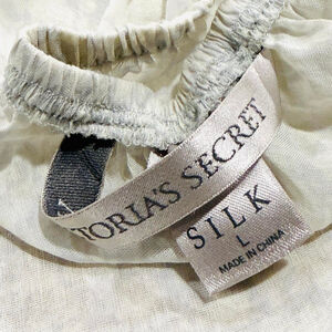 Almost vintage piece was manufactured November 2008. Silk blend and so very fairy lightweight! She’s got some tiny pinholes and very some small spots that may be able to come out with some gentle stain removal. Not sure but so adorable and could be upcycled easily!