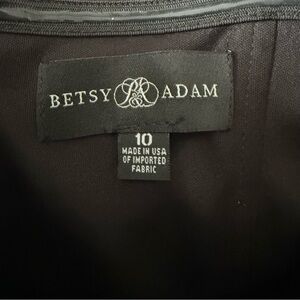 This jumpsuit is incredible! Perfect for your next black tie formal occasion for those looking for a modern twist on a classic gown look. From favorite formalwear brand Betsy & Adam, this jumpsuit is made of almost a suiting fabric with structured lapel-style strapless bodice with embellished button closure, pockets, high waisted with wide leg pants, fully lined and back hidden zipper closure. Excellent condition too!