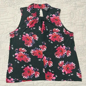 VANESSA VIRGINIA Green Floral Knot Keyhole Blouse Size L
