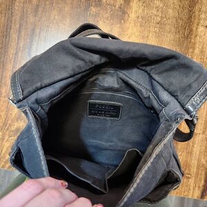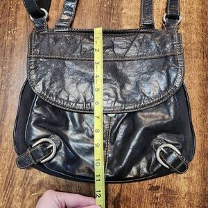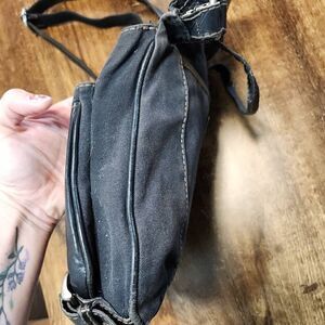 Fossil Lizette black leather and canvas convertible shoulder/crossbody messenger bag. **broken snap on flap, but sits closed without it**. Otherwise Good condition.