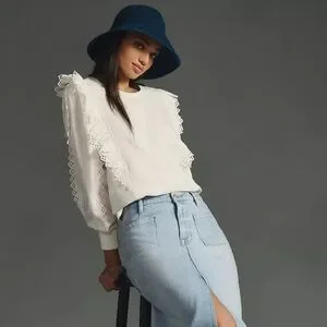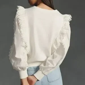 NWT Anthropologie Ruffle Sleeve White Top XS