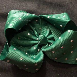 izaBowa Boutique, hairbow, Boutique Bow, Alligator Clip, ribbon, grosgrain, bow, handmade, Alligator Clip with Teeth, 8",green, apple green, forest Green, Rhinestone