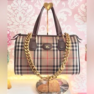 New BURBERRY Nova Check Canvas Mini Boston Bag 30