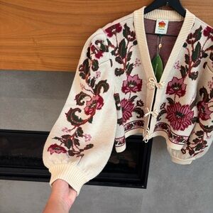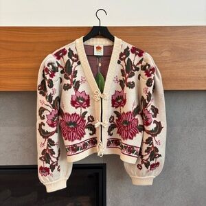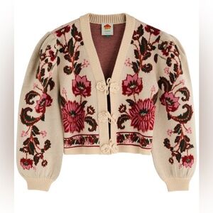 NWT Farm Rio Ravenala Floral-intarsia Knitted Cardigan Cream, Size L
