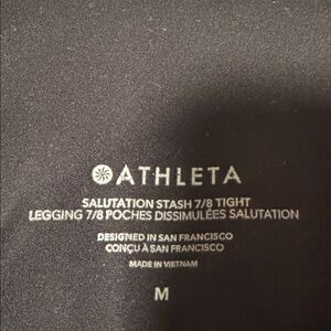 Athleta Salutation Stash High Rise 7/8 Legging Size Medium; previously owned, very good condition, smoke – free home, fast shipping, offers always welcome