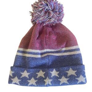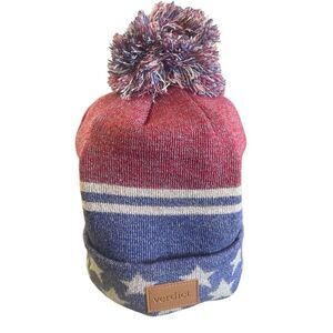 Verdict Knit Pom Beanie Red White Blue Stars NWOT