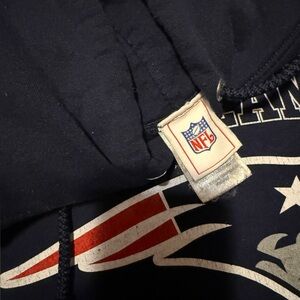 Navy hoodie with New England Patriots logo. Comfortable and stylish. Perfect for fans.