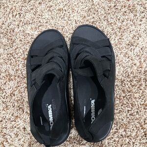 Stylish black sandals with a secure strappy design. Perfect for everyday wear.