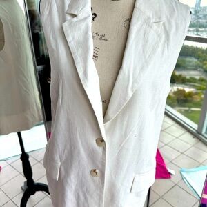 Enhance your wardrobe with this chic cream sleeveless blazer. Perfect for a sophisticated look.
