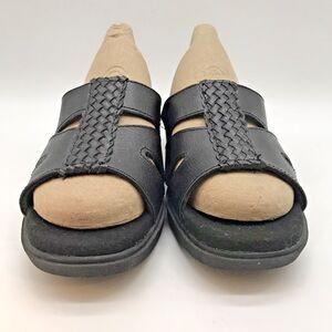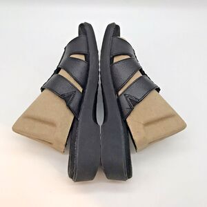 Dr. Scholl's Leather Wedge Sandals Women's 7M Black E3H-01 Comfort Slides Shoes