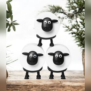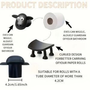 Charming sheep-shaped toilet paper holder in black and white. Adds a playful touch to your bathroom decor.