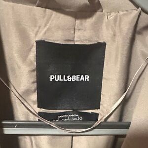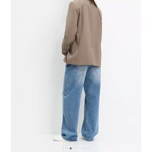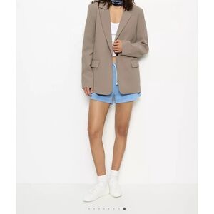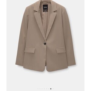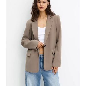 Oversized Taupe blazer with a button fastening, lapel collar and long sleeves.