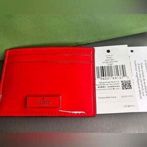 Chic card organizer in vibrant scarlet. Ideal for keeping essentials tidy. Patent leather and brand new with tags and quite versatile! Guaranteed authentic Kate Spade!