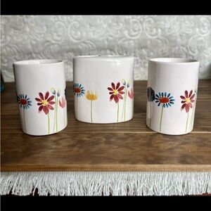 Rae Dunn Artisan Collection 3 Vanity Pieces Stuff & Brushes EUC Floral Holders