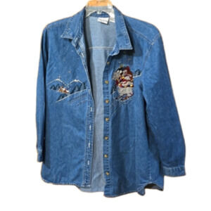 Vintage Bobbie Brooks Blue Chambray Long SleevedHoliday Shirt Women size 18/20W