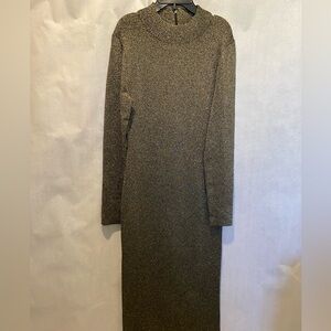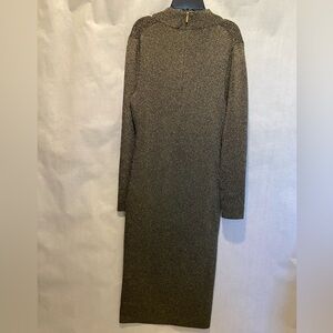 Michael Michael Kors Black & Gold Metallic Midi Dress Long Sleeve NWT L