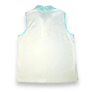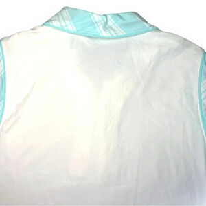Izod Women’s Sleeveless Polo Shirt XFG Stretch White & Aqua Plaid Collar - Size XL