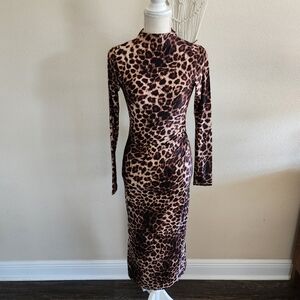 Good American Leopard Print Satin Shine Midi Dress Size Small NWT $179