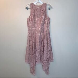 Eliza J Floral Lace Handkerchief Hem High Neck Midi Dress Blush Pink Lace 8