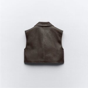 Chic leather vest by Zara. Features asymmetrical zipper and front pocket. Perfect for layering.