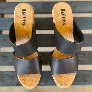 Korks Dezi Womens Platform Sandals 11M Black Leather Slip-On Cork Heel Open Toe
