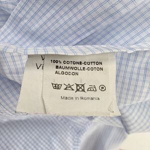 Valentino Roma men’s blue micro-check woven cotton dress shirt in size XL with a classic spread collar and luxury construction.