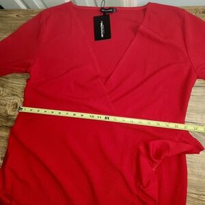 Pretty Little Thing Red Ruffle Detail Faux Wrap Mini Dress Women's Size 22.