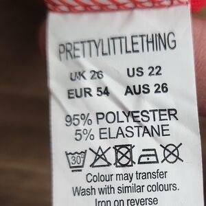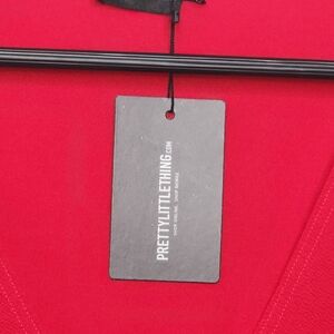 NWT. Slight difference in model hem line and actual hem line. see photos for difference. The Pretty Little Thing Red Ruffle Detail Faux Wrap Mini Dress in size 22 is a stylish and bold choice for holidays, parties or cocktail events. Made from polyester, this dress features a solid red color with ruffle accents, adding a touch of femininity to the short, wrap design. Easy to care for with machine washable instructions, this plus-size dress is perfect for summer, fall, and spring seasons. The PRETTYLITTLETHING brand ensures quality and on-trend style for any occasion.