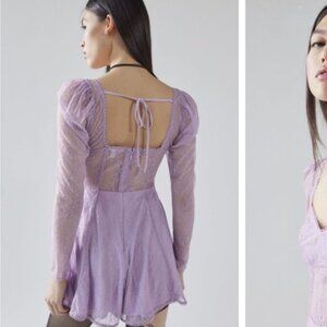 Urban Outfitters | Leah Lace Semi Sheer Romper New Medium Lilac Lavender Purple