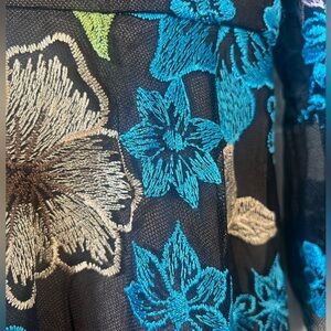 NWOT- Dress the Population- Beautiful embroidered Sample Dress. Size S. Sheer deep V and sleeves. Fully lined bodice and skirt. Hidden back zipper.