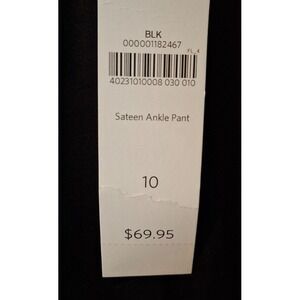 Coldwater Creek Women's Size 10 Black Sateen Ankle Pant Cotton Stretch NWT