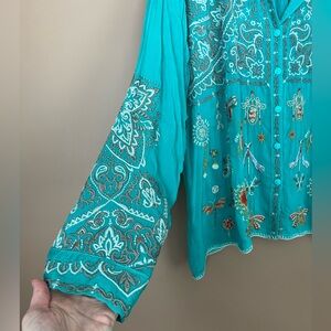 {Johnny Was} Renenutet Embroidered Insect Blouse - Womens Large