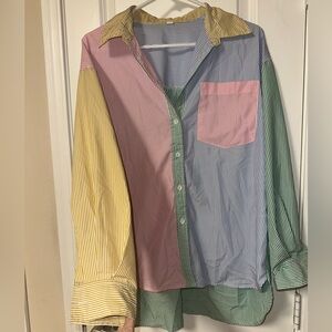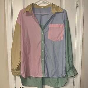 SHEIN Multicolor Striped Button-Up Blouse