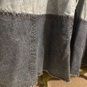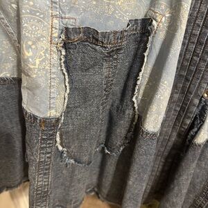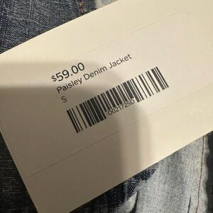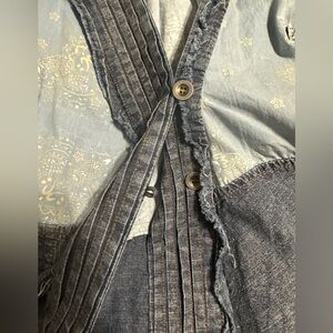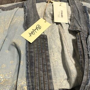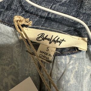 Brand new with tags. Brand is Blue Velvet which is great quality. Oversized jacket/top. Great detail. Super cute! Two buttons only on front middle at the center of chest. Denim trim on paisley blue print. Frayed trim.