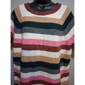 In excellent condition, this size 2X sweater features a fun, multi-colored striped pattern that's perfect for adding a pop of color to any outfit.