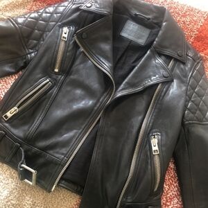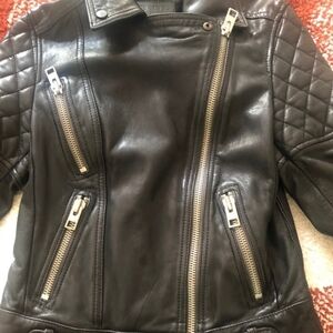 ALLSAINTS Favel Quilted Leather Biker Jacket Black Size 2 Limited Edituon Moto