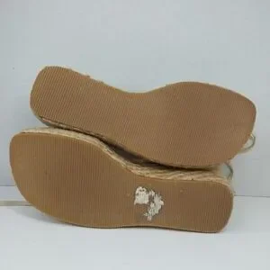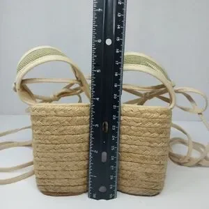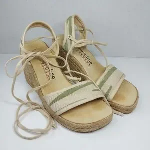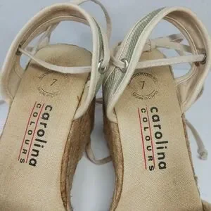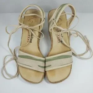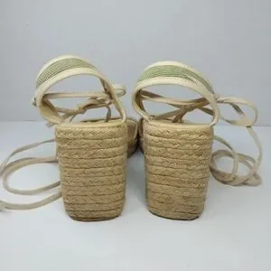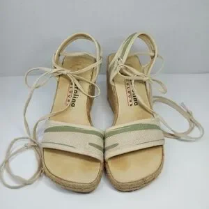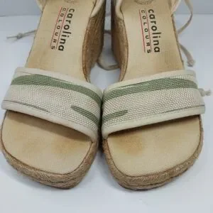 Carolina Colours Size 7 Tan Green Espadrille Wedge Y2K Tie Ankles Sandals Shoes