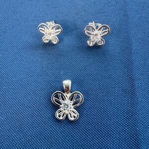 This exquisite silver butterfly jewelry set adds a touch of elegance to any outfit. Perfect for any occasion.new 925 Italy Sterling Silver set earrings and pendant