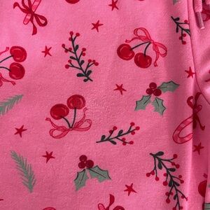 Pink Christmas Holly Lounge jogger set. Festive, cozy, pretty, preppy Jogging suit. Size Xsmall. Fits like a Small to Xsmall. 💕🎄🥳 sold out online. Only washed once on cold hung to dry. Realized too big but has taken tags off. Teeny dot tried to get out on pants barely noticeable- see last photo. Smoke free home.