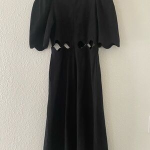 Sea New York NWT Leona Short Sleeve Cut Out Scalloped Midi Dress in Black Size 2