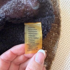 Elegant sweater with a bold black and brown pattern. Perfect for a sophisticated look. In perfect condition! So beautiful on! Missing size tag but it’s a small! #quietluxury #coastalcowgirl #designer #alice+olivia #cabincore #coquette