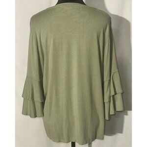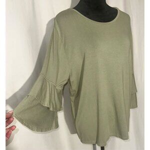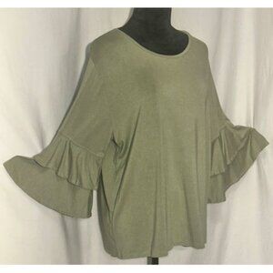 FRYE Olive Green Knit Top, Ruffled Sleeve, Large