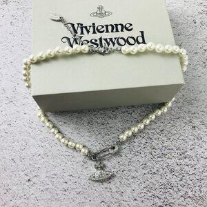 NEW Vivienne Westwood silvery Safety Pin Pearl Necklace