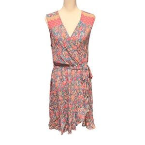Anthropologie Floral Print Sleeveless Mini Dress Ruffle Trim V Neck Casual SZ M
