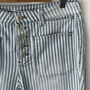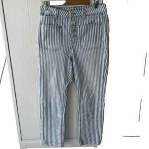 Pilcro Anthropologie Pants Size 29 Denim Blue White Stripe Button Fly Straight