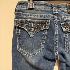 Miss Me Women’s Boot Cut Low Rise Jeans Sz 30 Embellished Flap Pocket Cowgirl