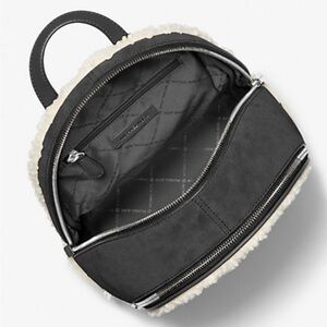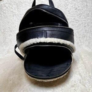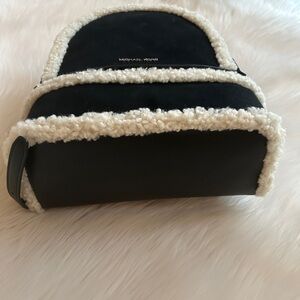 Elegant Michael Kors backpack in black suede with cream faux shearling accents. Ideal for daily wear. Combines style and practicality.New! Authentic